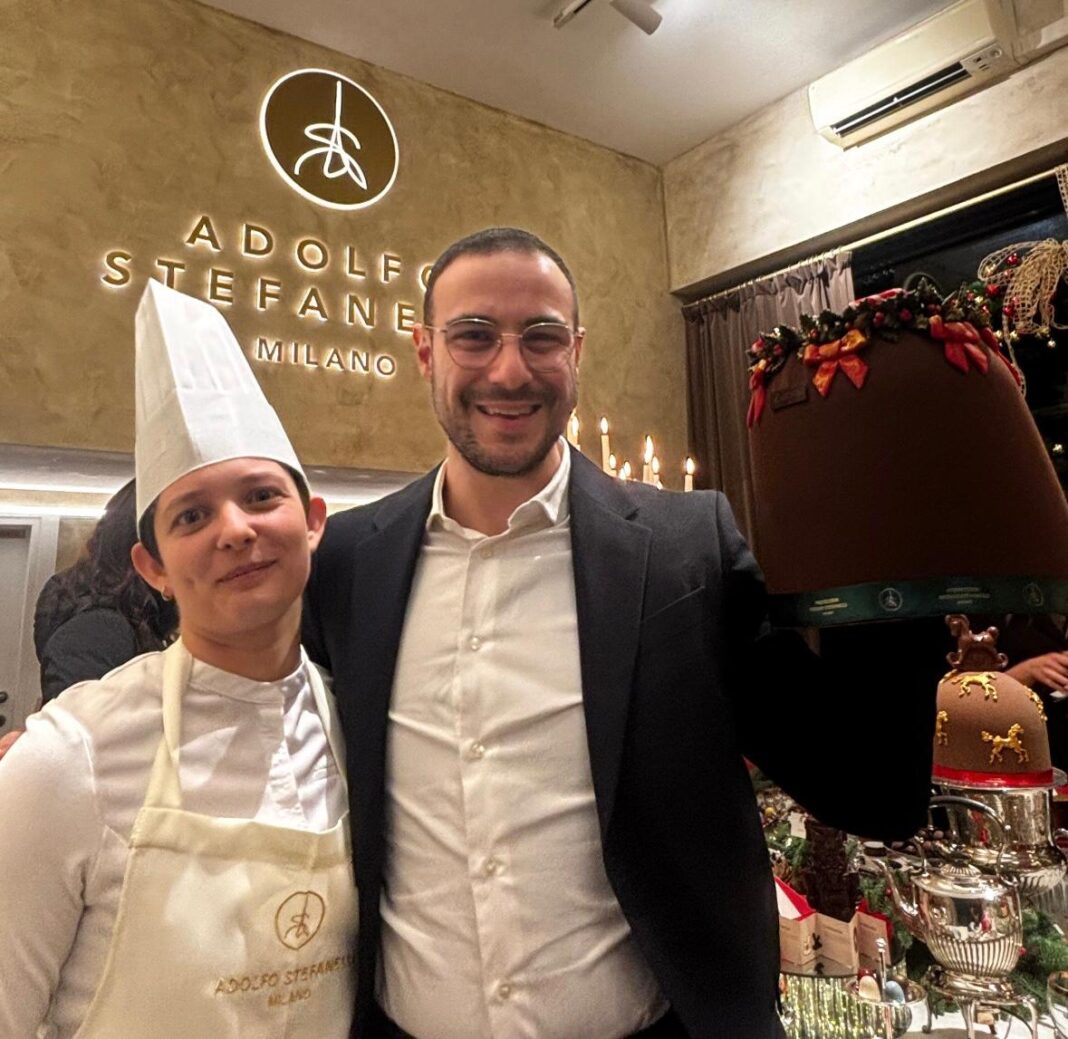 Tra panettoni gioiello, schiaccianoci, giostrine, palline di Natale in cioccolato e ghirlande, l’allestimento ha ricreato la dimensione festosa, giocosa e familiare delle serate natalizie. Non sono mancati i prodotti più identitari della pasticceria: i fichi del giardino di famiglia e le mele cotogne lavorate dalla mamma di Adolfo, ingredienti che rientrano nella filosofia di una produzione fortemente legata alla stagionalità e alle proprie radici.