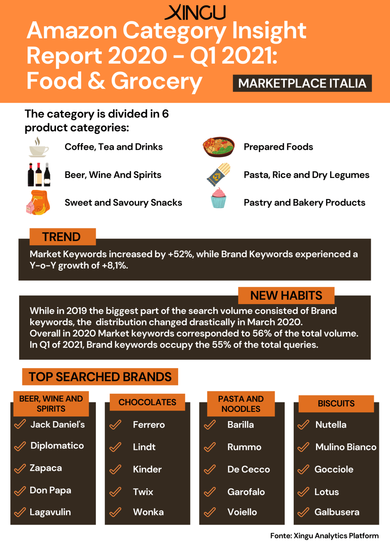 L’Amazon Insight Report 2020 – Q1 2021 per la categoria Food and Grocery è disponibile in versione ridotta gratuitamente sul sito di Xingu, per acquistare la versione completa contattare info@xingu.tech