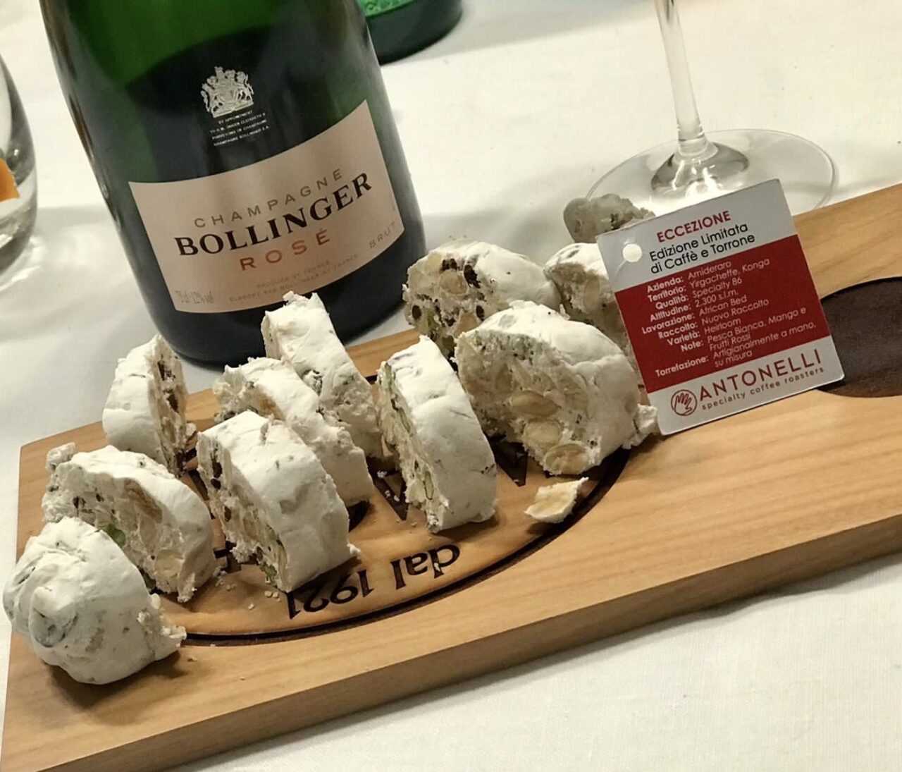Racconta ancora Antonelli: “Questo è il nome che ho voluto dare a questo pregiatissimo dolce per le festività natalizie, perché arrivasse sulle tavole di chi apprezza il buon cibo, e non dimentica per questo la buona compagnia degli amici, quelli con cui ci si concede l’ultimo rito che la tavola può offrire, quello del caffè, rigorosamente fresco e in grani.”