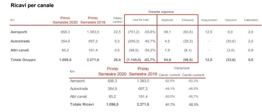 Autogrill: ricavi per canale