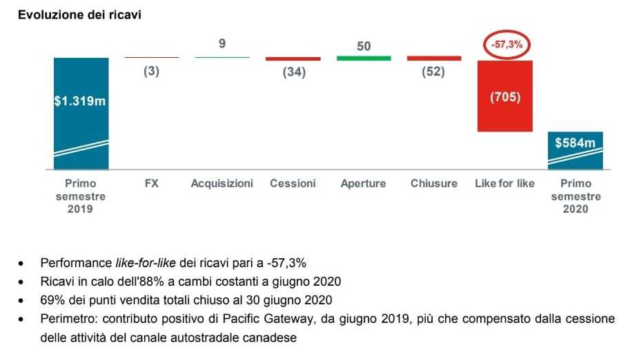 Autogrill: performance like-for-like dei ricavi: -52,7%