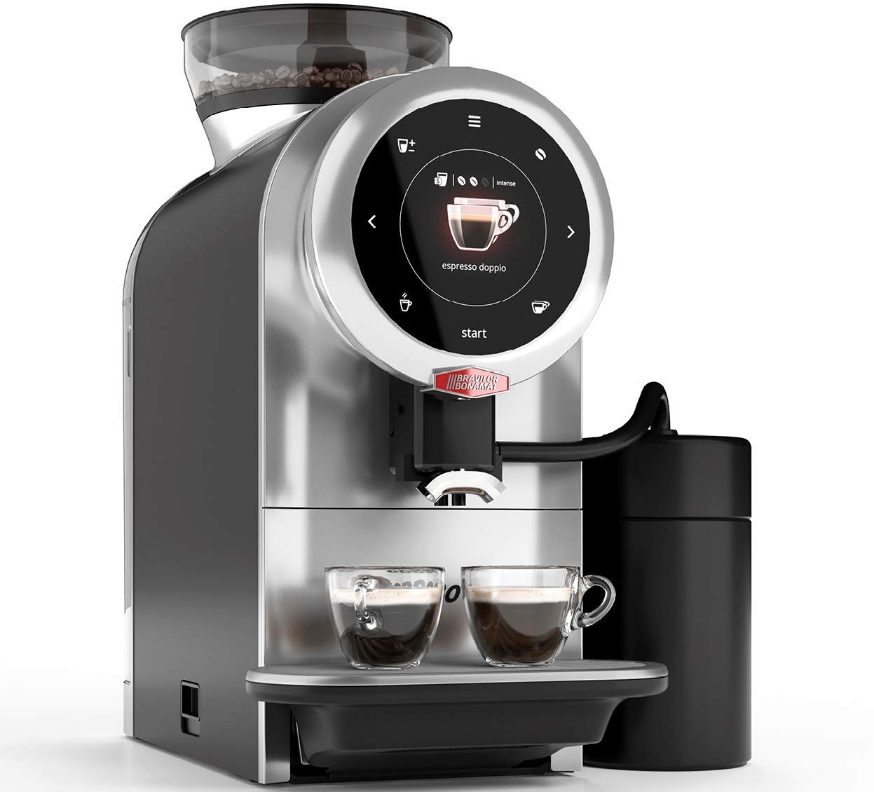 Macchina estremamente versatile, si contraddistingue per la possibilità di preparare non solo caffè espresso, ma anche ristretto, lungo e americano. Nonché per la possibilità di abbinare un piccolo frigorifero per il latte; per l’erogazione di espresso macchiato, cappuccino, latte macchiato e caffèlatte.