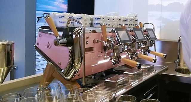 Per scendere nel dettaglio del caffè poi, sul bancone brillava un‘Astoria Storm tutta rosa. E collegata con tre tipi di cartucce differenti per produrre tre espressi diversi partendo dalla stessa miscela o monorigine.