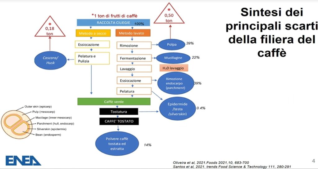 Questi ultimi due sono gli elementi più consistenti: circa il 45% delle ciliegie diventa uno scarto agroalimentare. Se si prendono in considerazione il metodo essiccato e lavato, si hanno a che fare con la cascara (la buccia del chicco essiccato, matrice molto ricca)