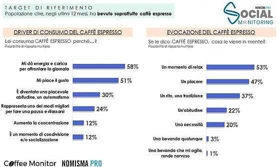 Driver di scelta solo per il 15% di chi consuma caffè espresso a casa). Tra i luoghi di consumo più importanti figurano anche i bar; scelti dal 72% del target di riferimento.