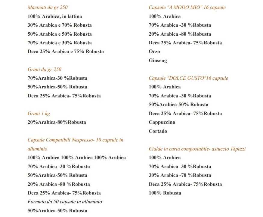 Le percentuali dei suoi blend diventano le denominazioni di vendita, dichiarate in modo chiaro sul fronte delle singole confezioni, unitamente all’origine, all’intensità del gusto, ai tempi di tostatura e al contenuto di caffeina.