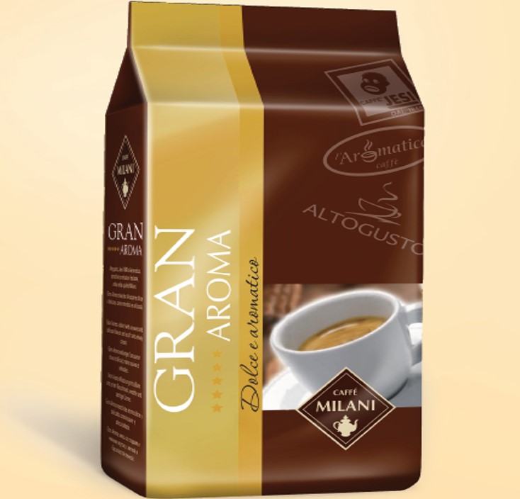 Gran aroma, in sacchetto da 1 chilo, è una miscela che offre in tazza un espresso dal sapore dolce e delicato con una presenza bilanciata di amarezza, acidità e dolcezza. Ha ottenuto la certificazione di prodotto Espresso italiano certificato e la medaglia d’oro all’International Coffee tasting 2014.