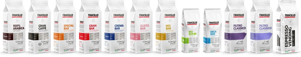 Che sullo sfondo, bianco da sempre, comunica la trasparenza dei comportamenti con la sua facile leggibilità; dove la caratteristica linea rossa si è trasformata in una calda pennellata, che trasmette gestualità, creatività e autenticità. L’eccellenza del caffè Trucillo – che grazie al tenace lavoro di Fausta Colosimo, moglie di Matteo, oggi è presente nei migliori locali in 40 paesi, incluso un Trucillo Cafè a Dubai, che raddoppierà a breve con una nuova apertura – si esprime nella gamma “Storie di bar” con le miscele professionali studiate per essere veri e propri strumenti di lavoro.