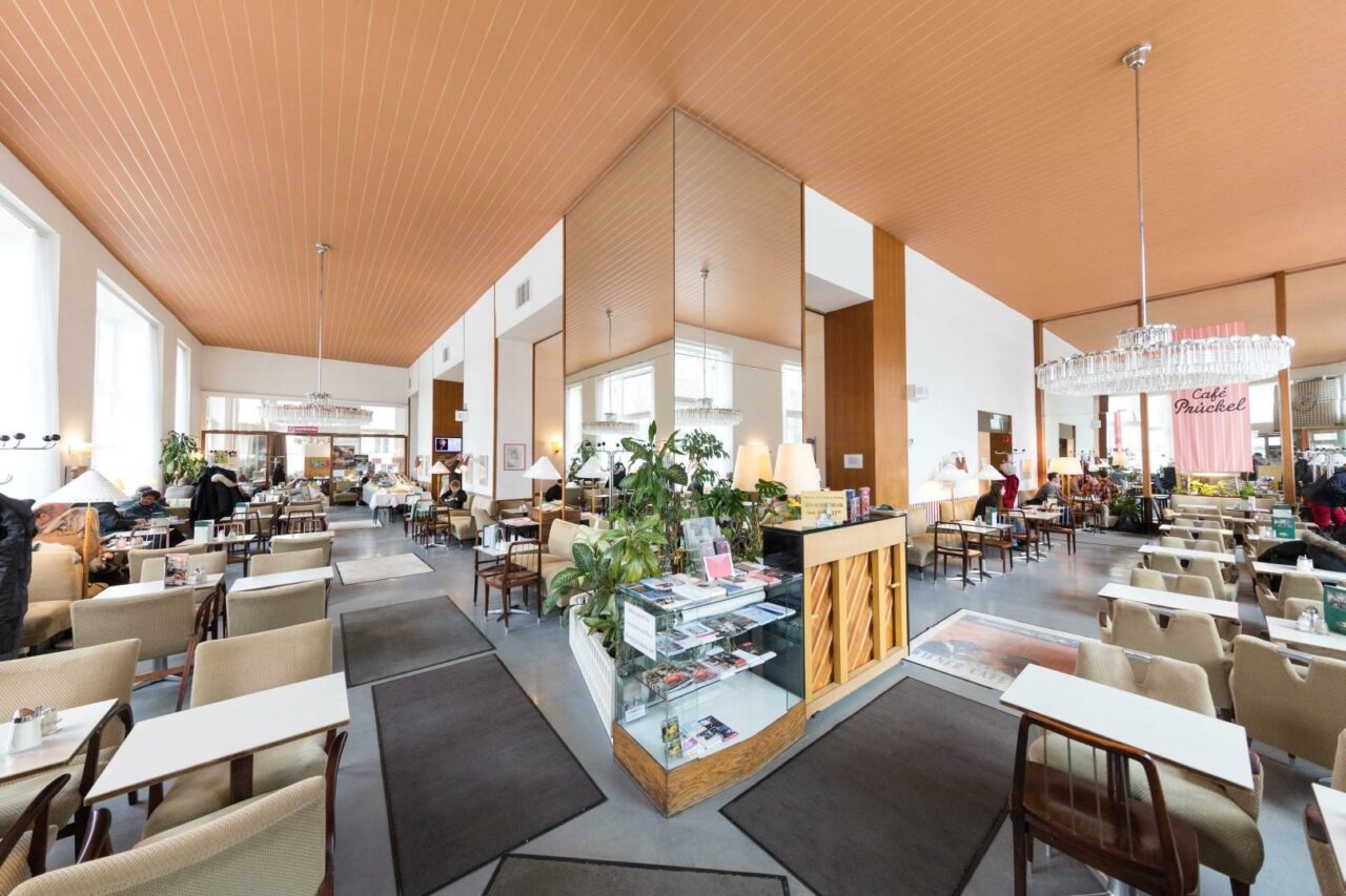 Sempre affacciato sulla Ringstrasse non manca di colpire i suoi avventori per l’arredamento originale anni Cinquanta. Una specialità di questo caffè, i cui interni sono stati realizzati secondo i progetti di Oswald Haerdtl, è la cosiddetta Prückel Creme. Un caffè nero in bicchiere con panna liquida. Un luogo per esteti.