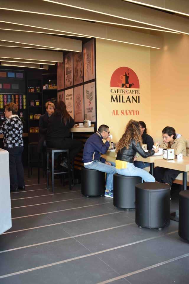 fronte al suo ingresso, al civico 22, uno storico locale riapre con un’immagine rinnovata e un’offerta che promette nuove interessanti esperienze di gusto: Caffè&Caffè Al Santo di Caffè Milani.