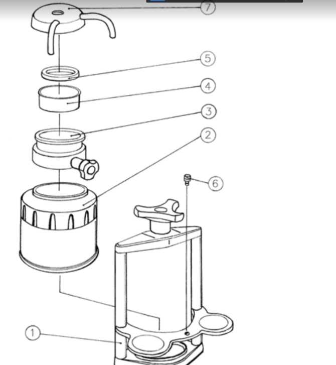 -Posizionare il filtro contenitore 4 con caffè macinato nella sede presente sull’elemento 3 e chiuderlo con l’elemento superiore 7.