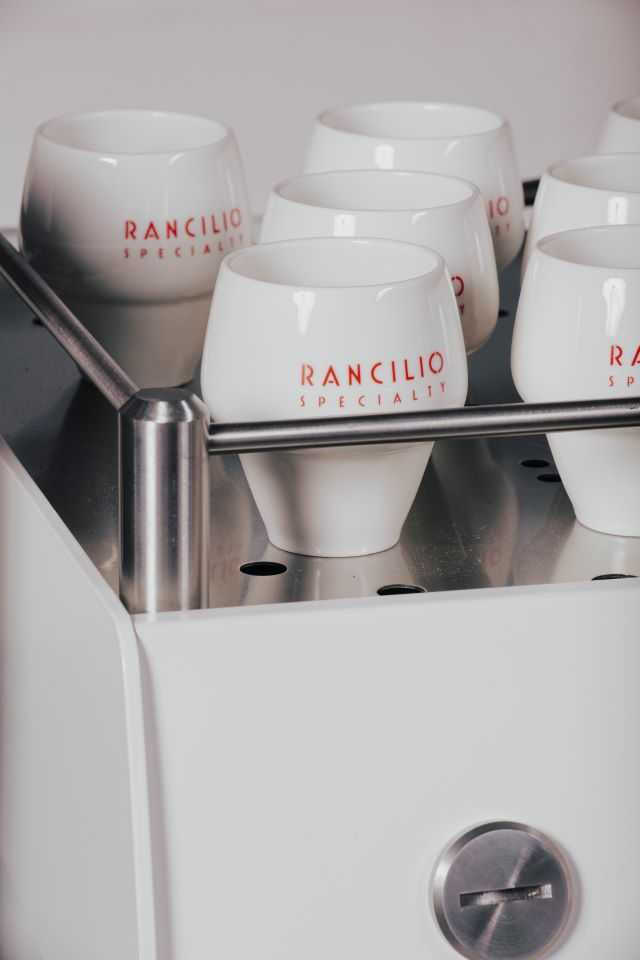 La tazza Rancilio Specialty è il frutto di un’attenta analisi delle fasi d’analisi sensoriale. La base conica, più stretta, raccoglie l’espresso concentrandone gli aromi e presenta un diametro studiato per facilitare una valutazione precisa della crema. La parte superiore, più ampia, detta aroma chamber, è progettata per trattenere i composti volatili e consentire un’analisi sensoriale più completa e accurata. Infine, qualora fossero presenti sentori empireumatici e pesanti, questi verranno trattenuti sul fondo della tazza.”