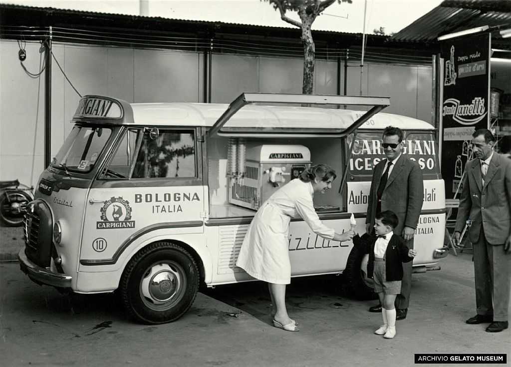 Sicuramente, però, la macchina che aveva preparato il gelato era una Carpigiani. Già nel 1946 la Carpigiani Bruto Macchine Automatiche aveva infatti messo in vendita l’Autogelatiera, una macchina color crema, capace di produrre dai 12 ai 40 litri di gelato in un’ora .