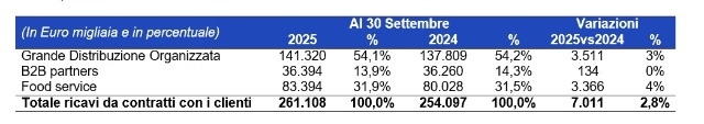 Nei primi nove mesi del 2025, la società ha registrato un fatturato pari a 261.1 milioni di euro, rispetto ai 254,1 milioni di euro dello stesso periodo dell’esercizio 2024, con un incremento del 2,8% grazie ad un aumento dei volumi di vendita, specialmente nel settore Dairy, ed in particolare del mascarpone, e un aumento del prezzo medio di vendita.