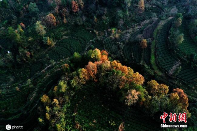 Nell’immagine gli oltre 133 ettari di piantagioni di tè del villaggio di Gongnong, nella città di Chongqing. Le piantagioni, circondate da alberi tinti d’autunno, creano un suggestivo scenario rurale.