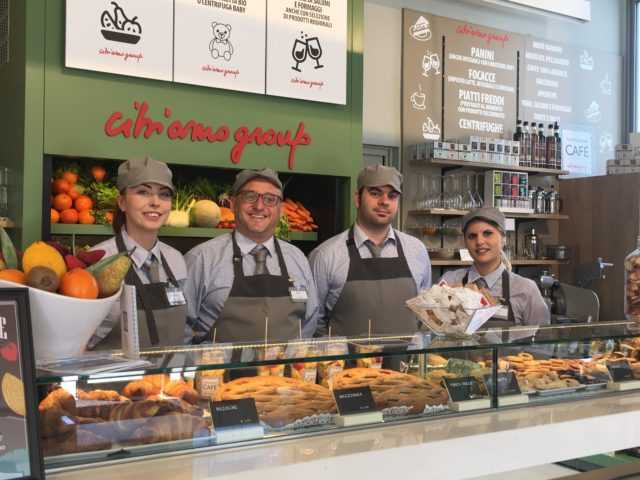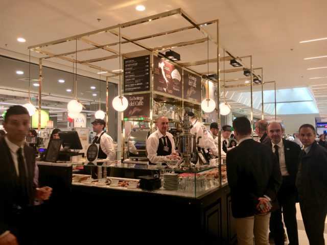 Nella food court al piano superiore si trova invece l’altro chiosco firmato La bottega del Caffè. In soli 44 mq propone, oltre ai prodotti di caffetteria, anche un’ampia offerta salata (insalate, focacce e panini gourmet). Completata poi dal corner Il Vino della bottega dedicato agli aperitivi serviti con taglieri di eccellenze DOP e IGP.