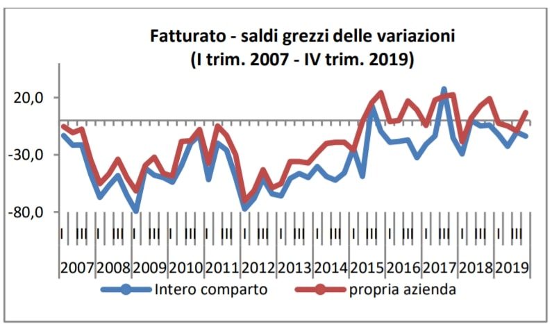 valutazioni positive e valutazioni negative sulla dinamica del fatturato dell’intero comparto