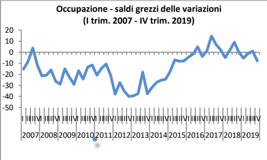 economiche e le prospettive occupazionali. Negativo il confronto anno su anno (2019 su 2018).