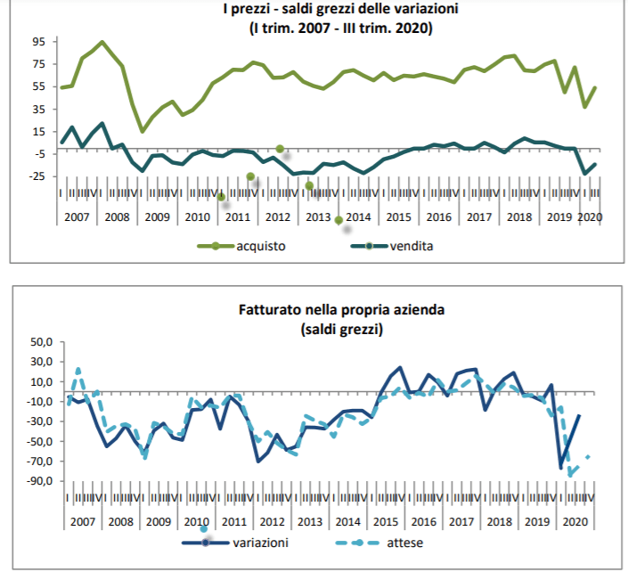 Le aspettative sul IV trimestre 2020 sono contraddistinte da forte pessimismo, in particolare riguardo alle performance economiche delle aziende e all’occupazione. Il quadro di incertezza che caratterizza la congiuntura non consente di guardare ai prossimi mesi con significativa fiducia. Atteso un ritocco al ribasso dei listini.
