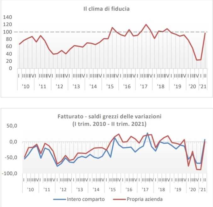 ROMA – Il clima di fiducia si attesta a 96,6, tornando ai livelli registrati nel secondo trimestre 2019. Tuttavia permane l’incertezza del futuro che incide sulle prospettive di breve termine. Le performance economiche: nella visione delle imprese, lo scenario di mercato è abbastanza positivo. Nel II trimestre 2021 il saldo tra valutazioni positive e valutazioni negative sulla dinamica del fatturato dell’intero settore segna +6,7% in miglioramento sia rispetto al buio periodo del lockdown dello scorso anno ma anche e soprattutto rispetto allo stesso periodo del 2019.