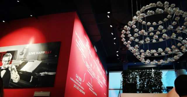 Una postazione dotata di spina, bicchieroni e operatori. Tutto al servizio del cliente curioso che, intanto, si gode l’atmosfera tra i lampadari di tazzine e Andrea Bocelli appeso al muro.