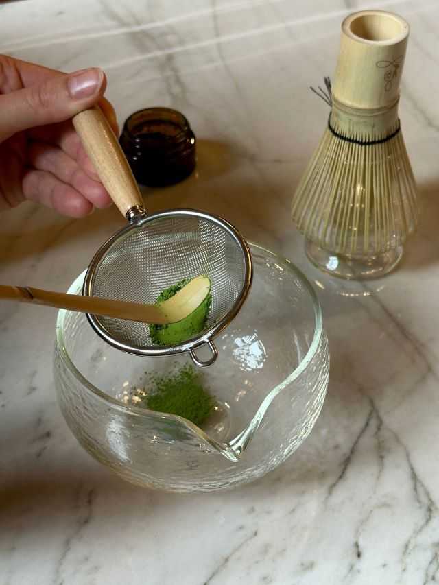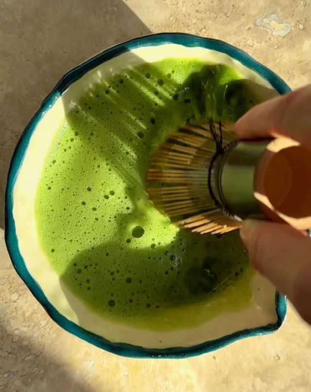 Ecco come procedere: scaldare l’acqua a 80 gradi massimo (questo perché la pianta ha diverse componenti. La L-teanina che ha un gusto più dolce, gli antiossidanti che danno invece astringenza e infine la caffeina che invece conferisce l’amaro alla tazza. Se si ha una buona qualità, il Matcha non sarà amaro, che per tenere la L-teanina dentro le foglie cresce coperto dal sole, proprio perché l’esposizione solare trasformerebbe la L-teanina in altri componenti. Se si superano gli 80 gradi, emergono queste caratteristiche negative al palato).