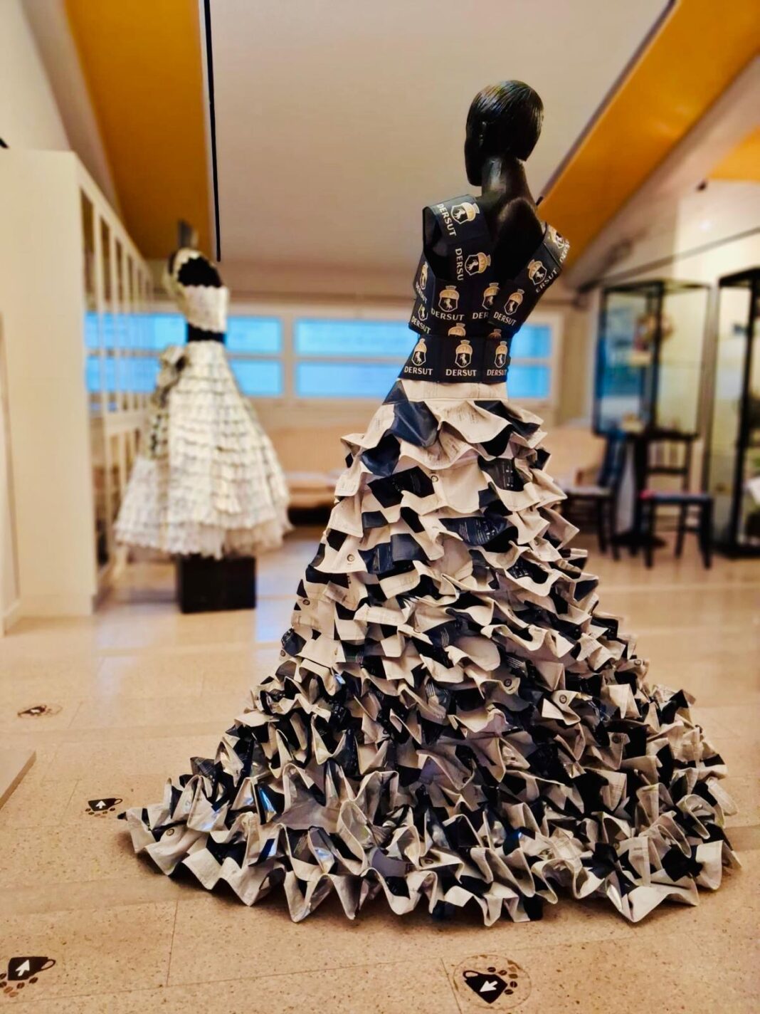 Ad arricchire ulteriormente la mostra, gli abiti d’arte realizzati dall’ecodesigner Debora Basei, fondatrice di Ricrearti, creati a partire dalle eccedenze di lavorazione Dersut. Materiali che, in oltre vent’anni di progetti dedicati al riuso creativo, si sono trasformati in cartelline portadocumenti, borse, lampade e complementi d’arredo.