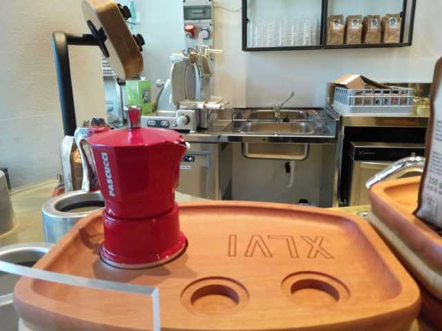 Abbiamo inoltre creato un vassoio specifico per questo tipo di fruizione, dotato di tre fori. Uno per posizionare la caffettiera e due per i nostri bicchieri.