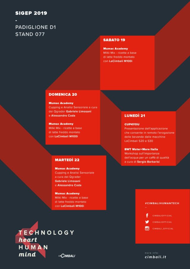 Per maggiori dettagli sugli eventi, è possibile trovarle sulle pagine ufficiali Facebook La Cimbali e Faema.