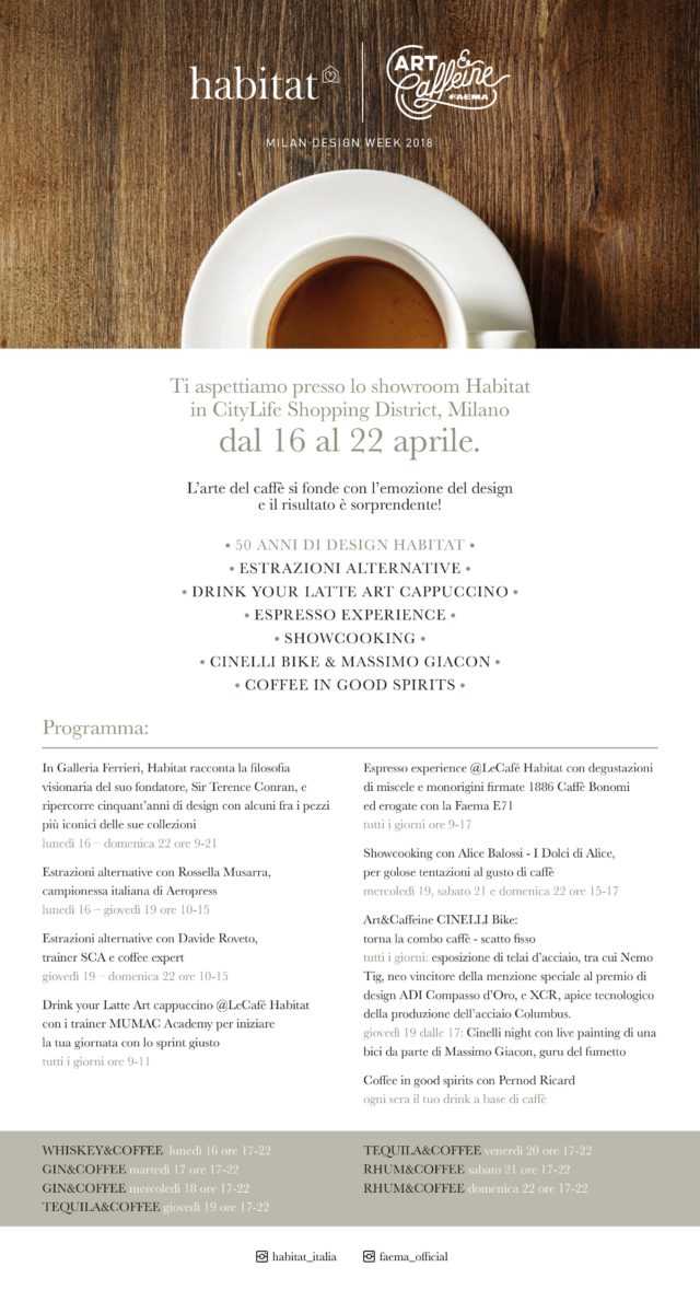 Il regalo ai visitatori di una full immersion nell’arte del caffè all’interno di ambientazioni di design. È questa l’esperienza unica che Faema, brand di Gruppo Cimbali simbolo dell’eccellenza dell’espresso made in Italy nel mondo, e Habitat offrono dal 16 aprile.