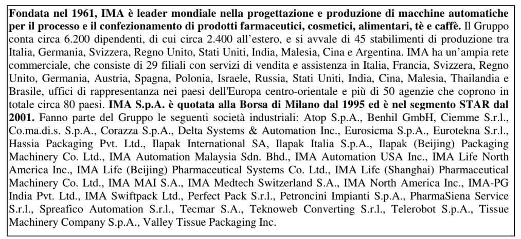 della Società www.ima.it (sezione Investor Relations) e presso il meccanismo di