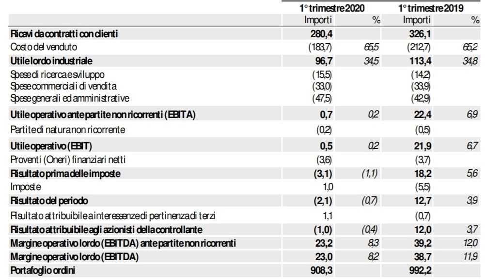 Il Gruppo IMA ha chiuso il primo trimestre del 2020 con ricavi consolidati a 280,4 milioni di euro rispetto ai 326,1 milioni di euro al 31 marzo 2019