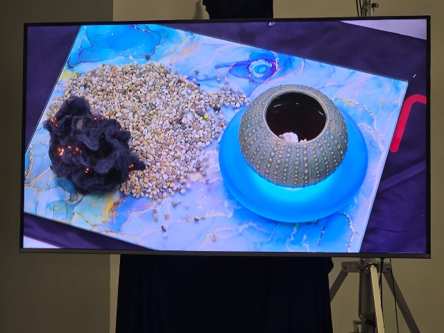 Completa il tutto una mise en place spettacolare, con il cocktail servito in un bicchiere a forma di riccio di mare su un vassoio che richiama il mare, i colori e il calore della terra campana.