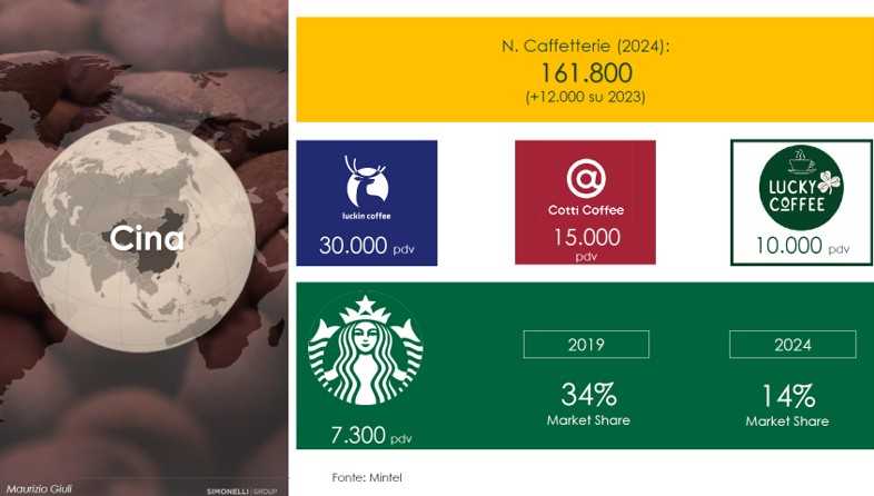 Tutto ciò a fronte di una sempre più marcata difficoltà degli operatori stranieri che avevano aperto il mercato al consumo del caffè, come Starbucks che, con le sue 7300 caffetterie, ha visto erodere la propria quota di mercato dal 34% del 2019 al 14% del 2024, quando ha fatto registrare un calo dei volumi del -1,4% a fronte di un più 36% fatto registrare da Luckin Coffee.