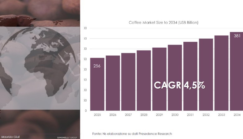Le proiezioni relative del mercato globale del caffè indicano una crescita a valore del 4,5%; molto più bassa quella a volume.