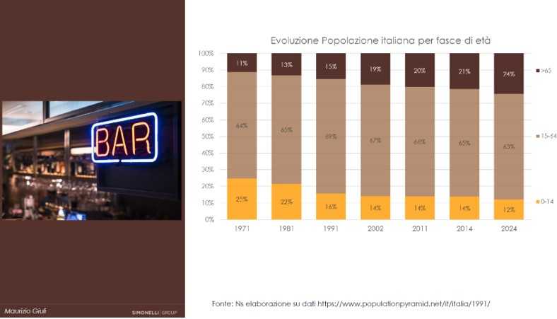 In prospettiva questo significa che ci saranno sempre meno giovani in grado di sostituire gli adulti che si sposteranno nella fascia degli anziani. In altre parole calerà il numero di utenti futuri del bar e quindi la soglia di equilibrio va ulteriormente abbassata.