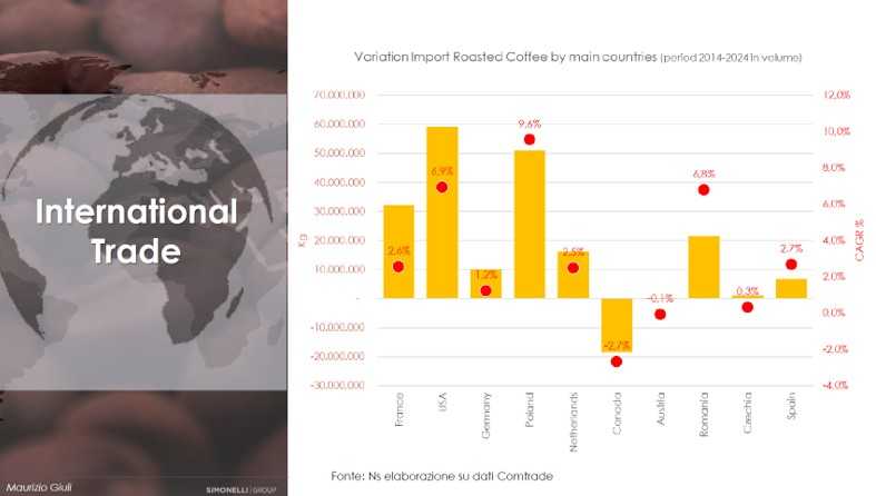 Il mercato che è cresciuto di più in termini di importazione di caffè tostato sono stati gli USA, seguiti da Polonia e Francia. La Germania, nostro primo mercato, è uno dei mercati più statici.