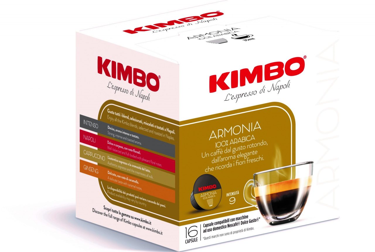 l’elegante Armonia 100% Arabica, con aromi di fiori freschi bilanciato alla perfezione da una soave profumazione di pan tostato; il nuovo Kimbo 5 Origini, una miscela delle migliori qualità di caffè 100% Arabica, attentamente selezionate e sapientemente tostate dai mastri torrefattori di Kimbo, sviluppata a quattro mani con lo chef stellato Gennaro Esposito, per dare vita ad un caffè napoletano contemporaneo, come un piatto stellato di