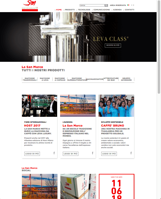 MILANO – Nuovo sito finalmente online per La San Marco. La storica azienda italiana produttrice di macchine da caffè espresso professionali dal 1920, si rilancia in una nuova veste grafica.