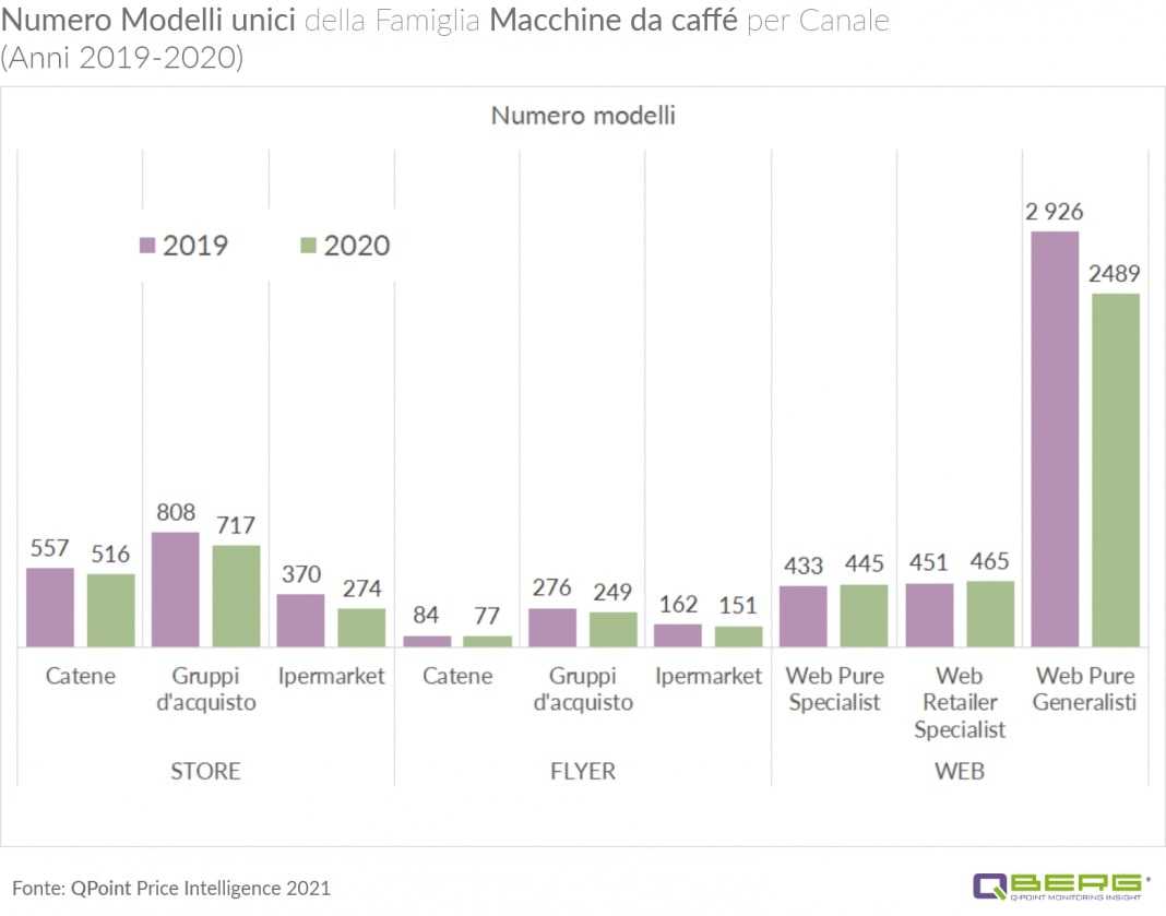 Dallo studio di QBerg è evidente che tutti i canali hanno compreso i nuovi bisogni degli italiani generati dalla pandemia, relativamente alla nuova modalità di prendere il caffè a domicilio. Il conseguente aumento della domanda di macchine da caffè è confermato dalla diminuzione dell’obsolescenza media dei prodotti in esposizione nei diversi canali.