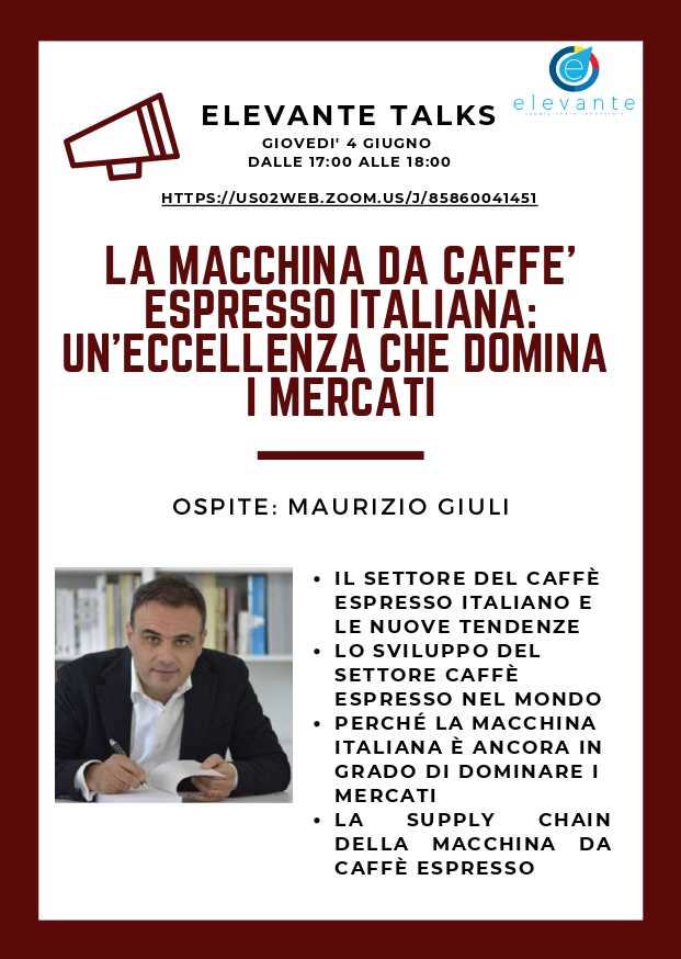 MILANO – In linea con la diffusione della cultura del caffè in tutti i suoi aspetti, si pone il prossimo talk che è in programma per oggi, giovedì 4 giugno alle ore 17. Un incontro virtuale che sarà dedicato al mondo della bevanda, con un ospite di livello, Maurizio Giuli, Presidente Ucimac.