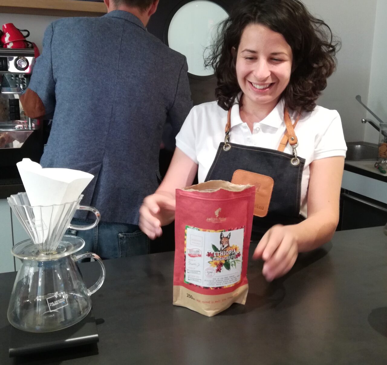 Durante l’evento di presentazione, dietro al bancone si è mossa una professionista d’eccezione, Helena Oliviero. Che ha messo alla prova le conoscenze dei presenti, facendo loro scoprire un mondo nuovo a partire dalla tazzina. Illustrando prima le nozioni base dietro la ricetta di un espresso: 25/30 ml di acqua per 7/8 grammi di caffè, con un’erogazione di 25/30 secondi. Passando poi alla ricetta fredda del cold brew, cambiando con un 100% Arabica. Infine, ha portato il pubblico alla degustazione di due monorigini, un Etiopia e un Malawi lavati e di altitudine di circa 2.000 metri, con una tostatura chiara.