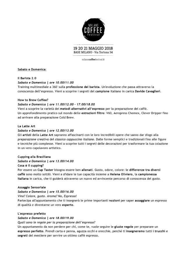 Sabato 19 e domenica 20 Milano Coffee Festival sarà aperto a tutti i visitatori gratuitamente
