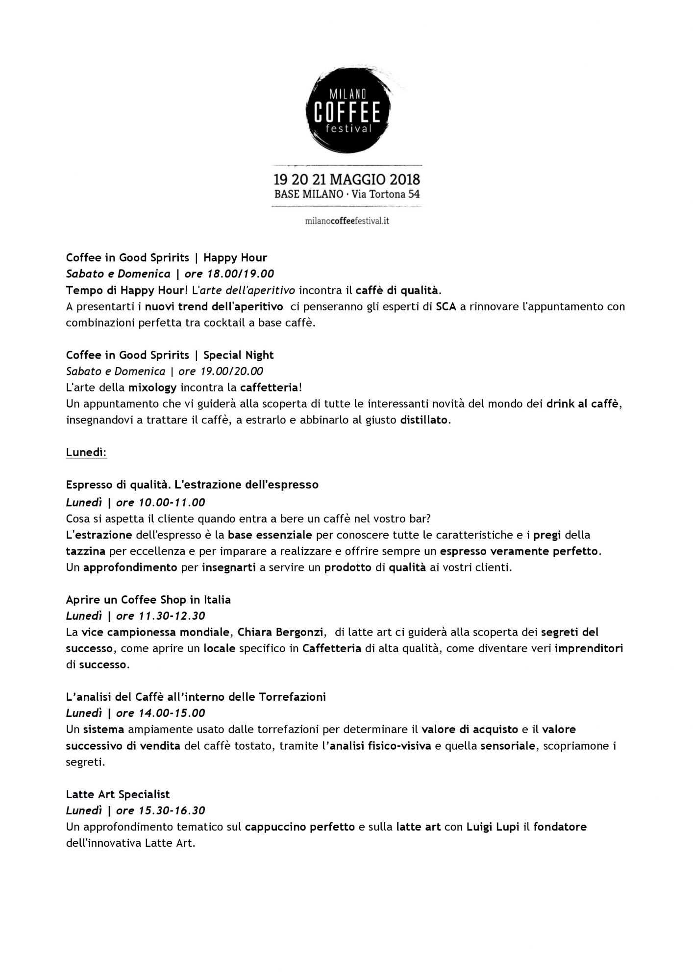 MILANO – Milano Coffee Festival invita il grande pubblico ad approfondirne origini e segreti. Una vera e propria coffee experience è infatti ciò che attende consumatori e appassionati, torrefattori, produttori di macchine e operatori del settore.