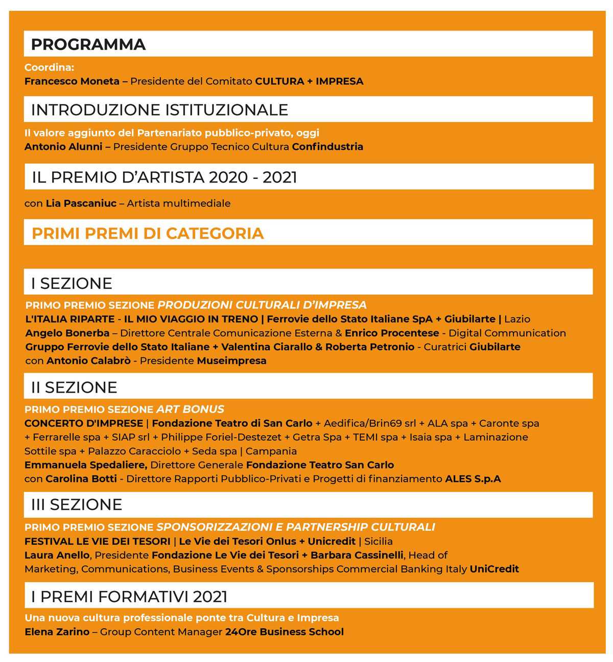 MILANO – Lunedì 5 Luglio si svolgerà la premiazione dei vincitori del Premio Cultura+Impresa 2020-2021. La partecipazione al workshop di premiazione avverrà in diretta streaming on line (per registrarsi cliccare qui): si tratta di un’occasione di confronto sulle ‘buone pratiche’ nel rapporto strategico tra Cultura e Impresa e nel partenariato Pubblico-Privato, ascoltandole dalla voce dei protagonisti dei Progetti vincitori, ponendo particolare attenzione agli strumenti e ai percorsi di Innovazione Digitale nelle Arti e nella Cultura e di Corporate Cultural Responsibility. Tra i premiati anche Mumac grazie al supporto conferito all’Associazione MuseoCity per la realizzazione e la promozione del progetto Pausa Caffè.