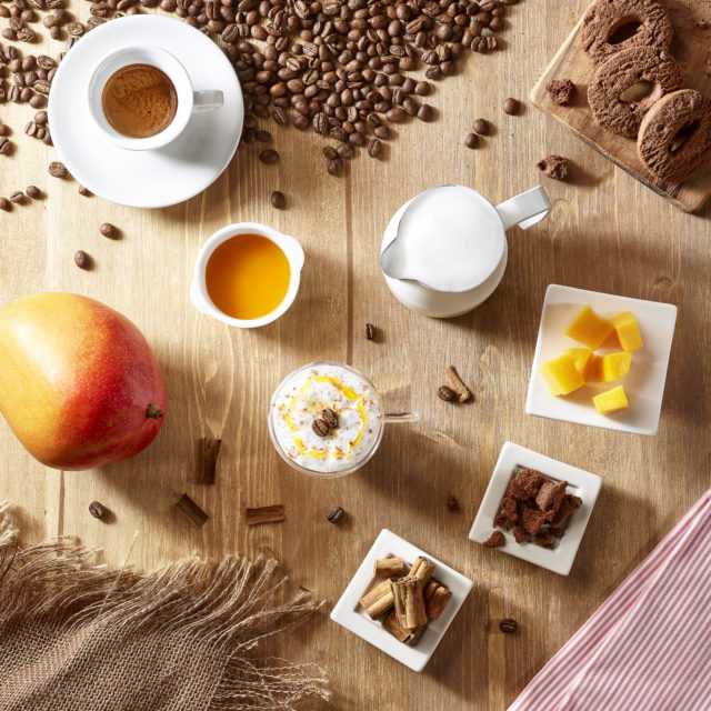 Gli ingredienti di quest’ultima ricetta sono semplici. Innanzitutto, 7g di biscotto al cacao e 10g di topping Orientale (ai frutti tropicali). Poi 10g di latte montato freddo e 1 caffè espresso (25ml). Consigliato Brasile. Infine, cannella in polvere q.b. e, per guarnire, un chicco di caffè o una stecca di cannella.