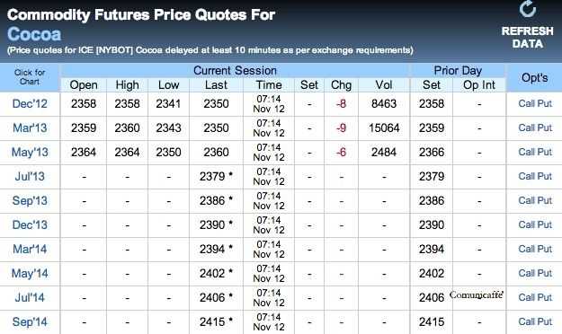 Cliccare il link: http://data.tradingcharts.com/futures/quotes/CC.html