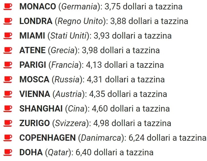 Ma quanto costa una tazzina di caffè nelle varie città del mondo?