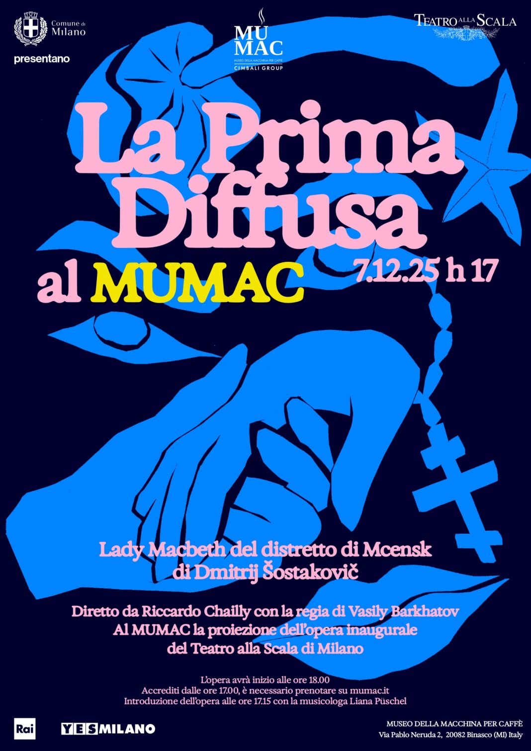 A Binasco (Milano), il MUMAC di Cimbali Group accoglie per l’ottavo anno la Prima Diffusa, il progetto del Comune di Milano, Edison, Rai e Teatro alla Scala che porta la Prima nei quartieri della città e dell’area metropolitana. Protagonista dell’edizione 2025/2026 è Lady Macbeth del distretto di Mcensk di Šostakovič, opera intensa e provocatoria diretta da Riccardo Chailly e firmata dal regista Vasily Barkhatov