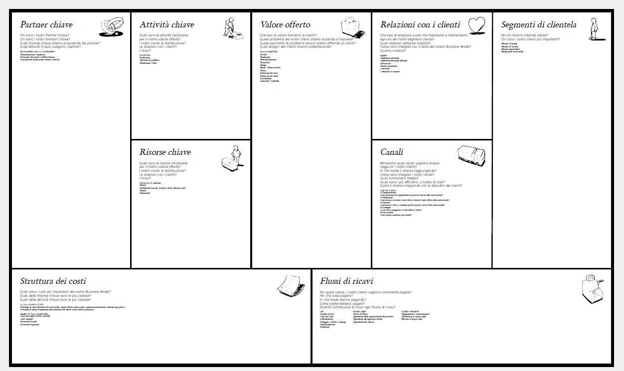 Lo strumento adottato per ridisegnare il nuovo modello è stato ovviamente il Business Model Canvas che utilizziamo in ogni analisi aziendale che siamo chiamati a fare per ridisegnare un’azienda e un modello di business al passo con i tempi.